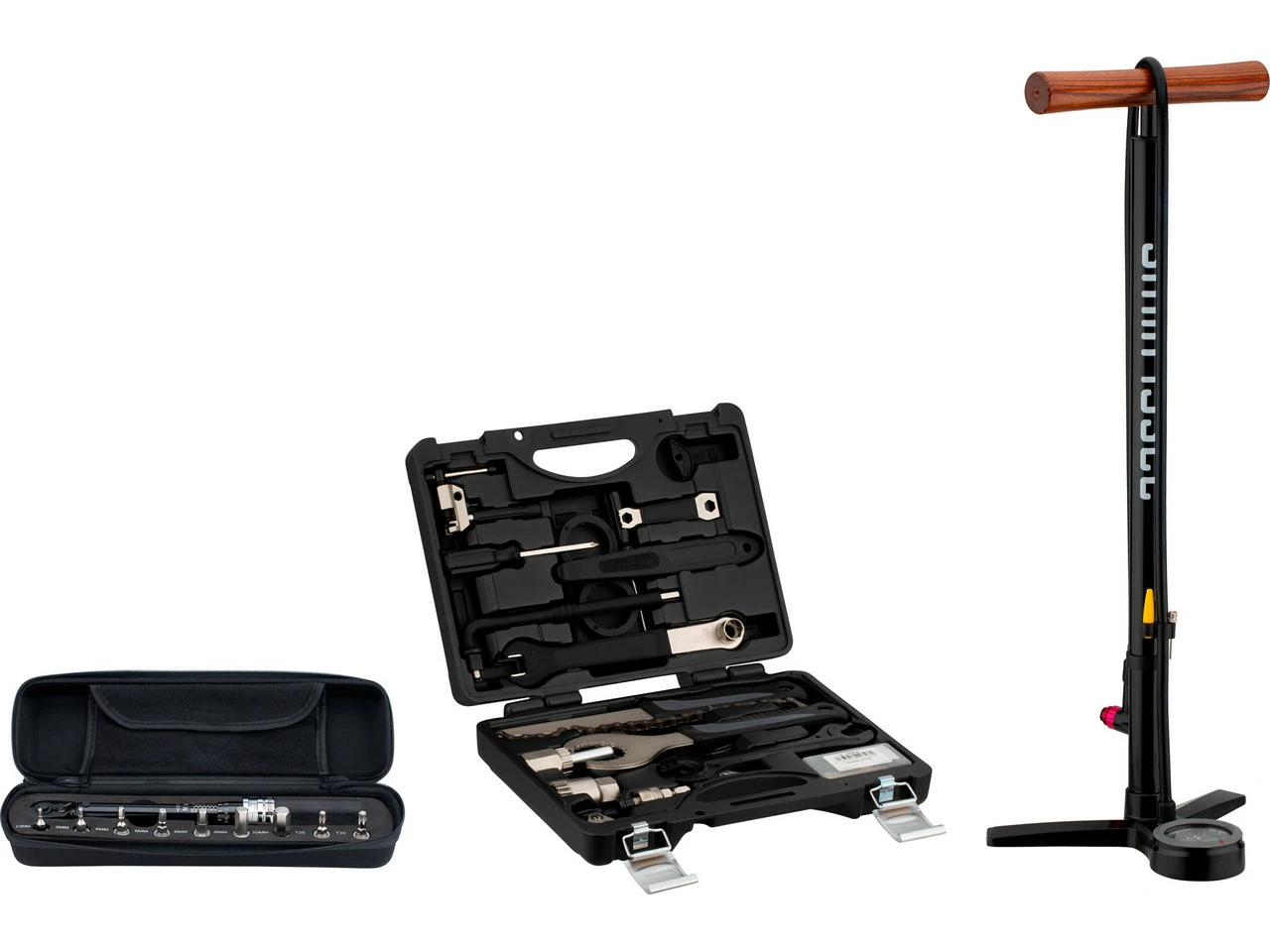 1 x Fahrrad-Werkzeugkoffer BTK-2 mit Inhalt1 x Drehmomentschlüssel Premium mit Bit-Set und Aufbewahrungscase1 x Standpumpe Aluminium