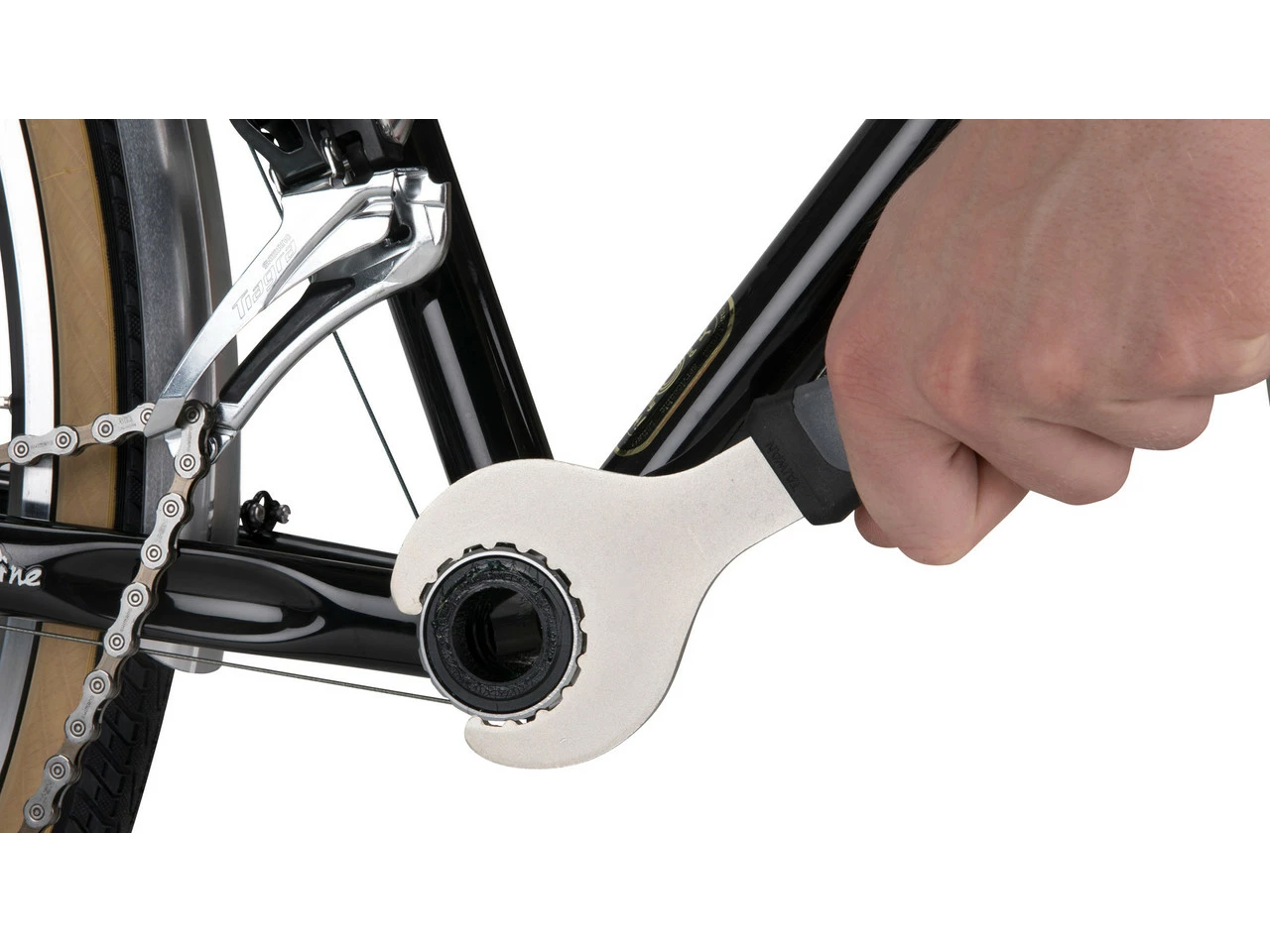 Dieses Innenlagerwerkzeug von 3min19sec lässt sich speziell für Shimano Hollowtech II Kurbeln mit 24 mm Welle nutzen. Es wird ein Staubkappenschlüssel (mit Logo) mitgeliefert, welcher dank seiner 8-fach Verzahnung dafür geeignet ist, die Kurbelschraube zu lösen. Das Werkzeug besteht aus Stahl und hat einen gummiummantelten Griff, der angenehm in der Hand liegt. Wenn Du eine Shimano Octalink Kurbel hast, passt der Innenlagerschlüssel nicht, aber Du findest dafür ein anderes Werkzeug in unserem Sortiment.