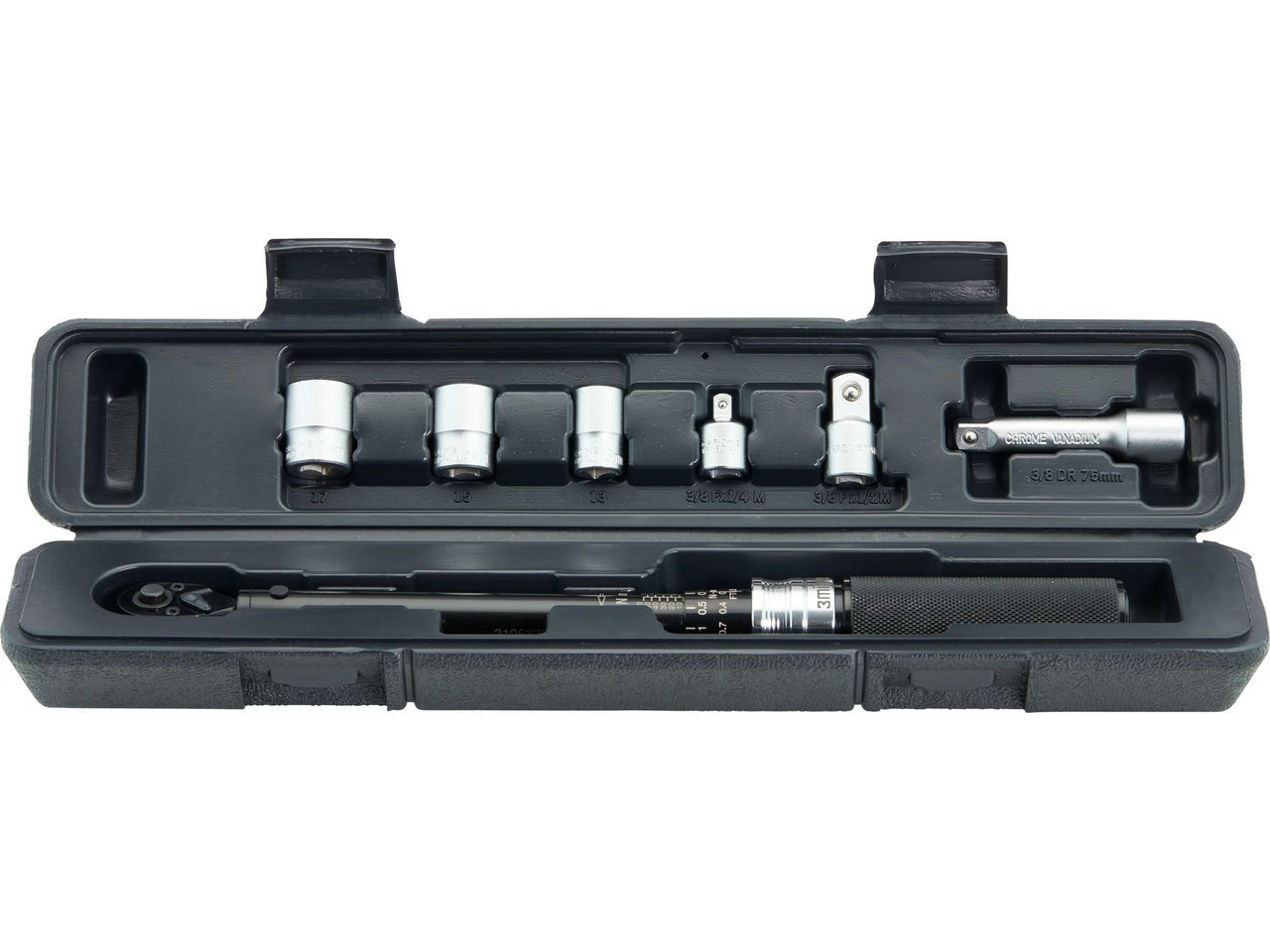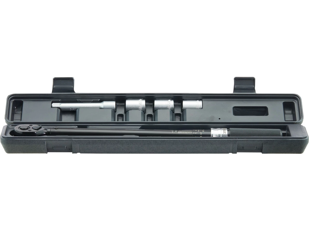 Spezifikationen:Funktion:Schraubwerkzeug mit definiertem AnzugsdrehmomentWerkzeugaufnahme:1/4″ (2 – 26 Nm), 3/8″ (10 – 60 Nm), 1/2″ (40 – 200 Nm)Einstellbereich:2 – 26 Nm, 10 – 60 Nm, 40 – 200 NmTechnische Daten:Material:StahlLänge:21 cm (2 – 26 Nm), 31 cm (10 – 60 Nm), 49 cm (40 – 200 Nm)Toleranz:± 4 % vom eingestellten Wert (bei 2 – 26 Nm, zwischen 5 und 26 Nm gemessen), ± 3 % (bei 10 – 60 und 40 – 200 Nm)Auslöserichtung Drehmoment:rechtsAntriebsrichtung:rechts / links umschaltbarFeatures:präziser Drehmomentschlüssel aus hochwertigem Stahlfeinjustierbar in 0,2-Nm- bzw. 0,5-Nm- bzw. 1-Nm-Schritten (je nach Version)langer Griff mit strukturierter Oberfläche für optimales Handling und idealen Krafteinsatzauch für empfindlichere Teile z. B. aus Carbon geeignetpraktisches Case für Transport und Aufbewahrung