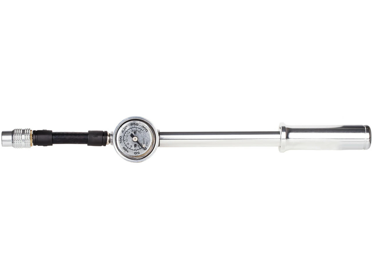 Technische Daten:Material:AluminiumDruck (max):20,7 bar (300 psi)Druckanzeige:AnalogGröße:24 x 2,5 x 3 cmTechnologien:Air-Lock:Der Air-Lock Ventiladapter wird einfach auf das Gewinde des Schrader Ventils an der Federgabel auf- oder abgeschraubt. Dieser Adapter verhindert den Luftverlust beim Entfernen des Ventils von der Gabel.Herstellernummer:BM13-TR-ZCSP03-SMC