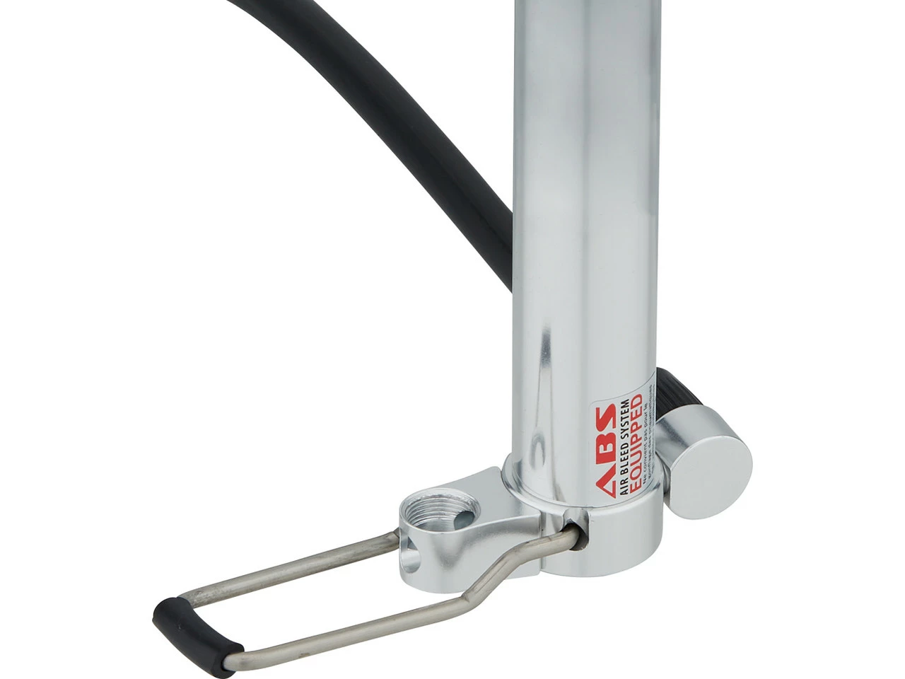 Technische Daten:Material Zylinder:AluminiumMaterial Standfuß:EdelstahlMaterial Griff:AluminiumPumpenkopf:Schrader, Presta mit ABS (Air Bleed System), DunlopDruck (max.):11 bar (160 psi)Länge Schlauch:600 mmGröße:300 mmFeatures:langer PumpenschlauchCNC-bearbeitete Aluminiumkonstruktionergonomisch geformter, CNC-bearbeiteter Griff aus Aluminiumwendbarer ABS-Ventilaufsatz für Presta- und Schrader-Ventileklappbarer Standfuß aus EdelstahlVentilinformation:AV-Ventil: