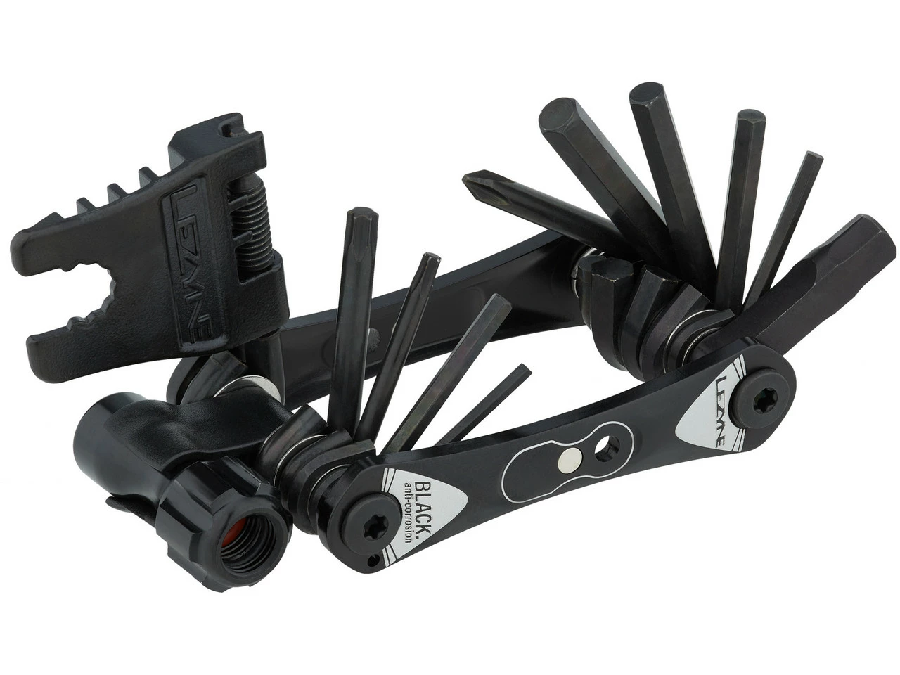 Das Lezyne RAP II 19 Multitool aus korrosionsbeständigem Chrom-Vanadium-Stahl besteht aus 18 Werkzeugen für alle wichtigen Fahrradkomponenten, von Kette bis Vorbau. Hinzu kommt ein abnehmbarer CO2-Pumpenkopf als praktischer Pannenhelfer.