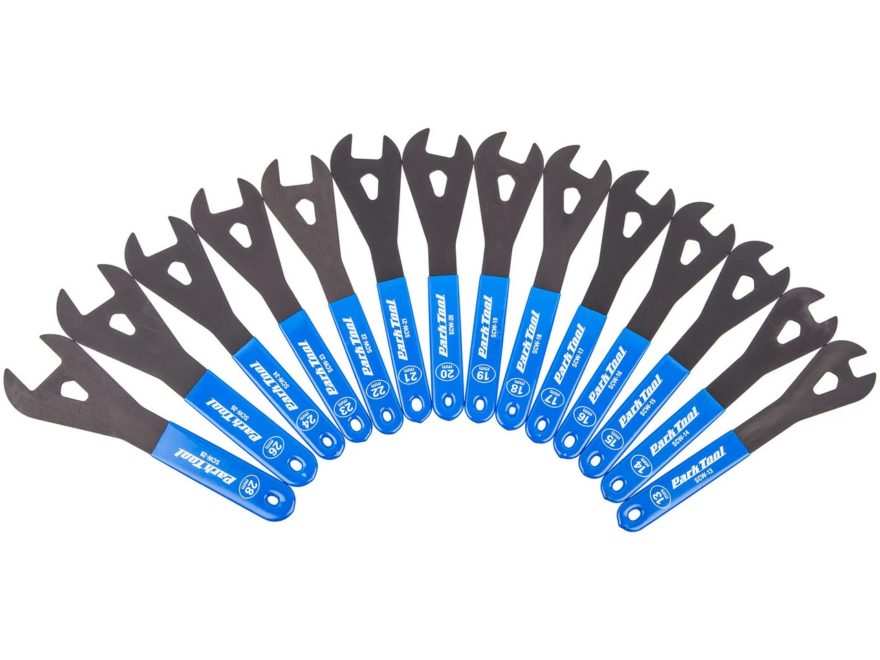 Features:Konusschlüssel: 13 / 14 / 15 / 16 / 17 / 18 / 19 / 20 / 21 / 22 / 23 / 24 / 26 / 28 mmrelativ dünn und stabil, um auch auf den schmalsten Konus zu passenPhosphatierung statt Verchromung der Oberfläche für äußerst geringe Passtoleranzen und lange HaltbarkeitLieferumfang:14 x Konusschlüssel ParkTool SCW-Set 3