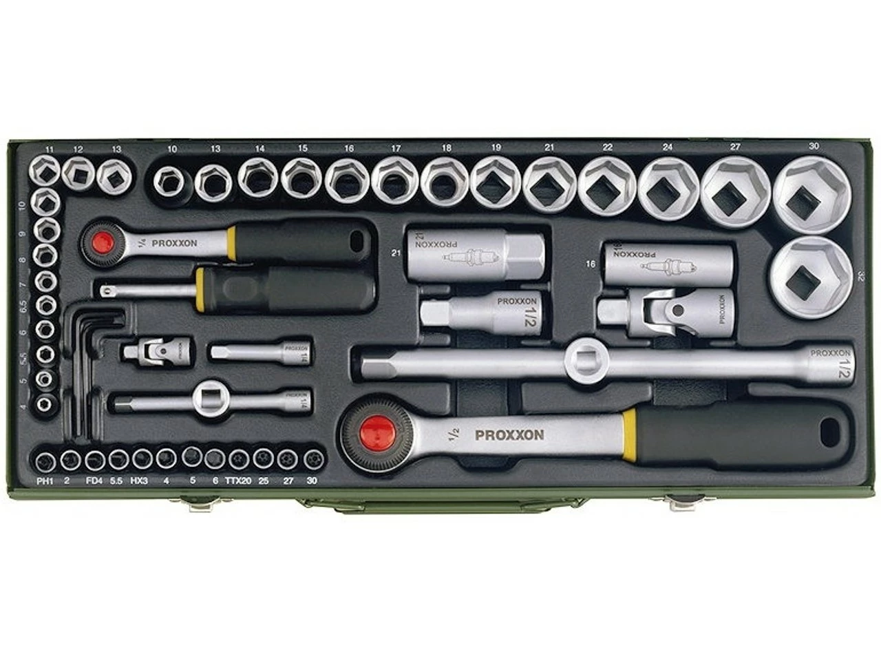 Proxxon 1/4″ + 1/2″ Steckschlüssel-/Ratschenset 56-teilig