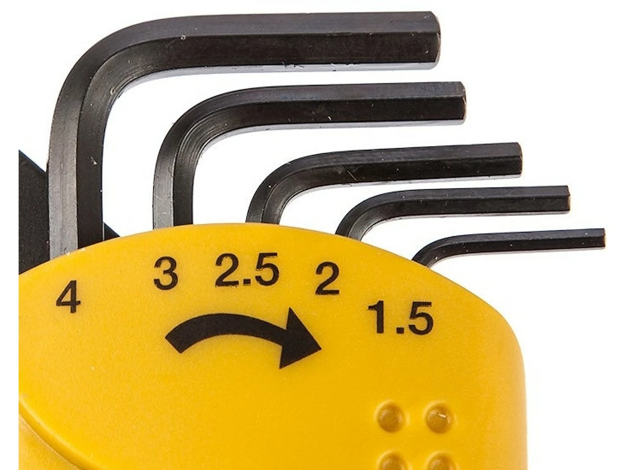 Technische Daten:Material:Chrom-Vanadium-StahlGrößen:1,5 / 2 / 2,5 / 3 / 4 / 5 / 6 / 8 und 10 mmFunktionen:9Funktionen:Innensechskantl:1,5 / 2 / 2,5 / 3 / 4 / 5 / 6 / 8 / 10 mmFeatures:Winkelschlüsselsatz für Innensechskantschrauben (HX)mit Sechskant-Kugelkopf am langen Schenkelwerden in praktischem Klapphalter aufbewahrt (Größen 1,5 bis 4 lassen sich zur leichteren Entnahme seitlich wegklappen)9-teiligHerstellernummer:23946