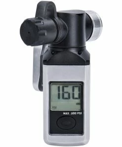 Die leicht ablesbare Digitalanzeige kann an einer Pumpe befestigt oder alleine verwendet werden. Sie liefert genauste Druckmessungen bis zu 20,7 bar. Der frei drehbare Ventilkopf ist für Presta-, Schrader- oder Dunlop-Ventile geeignet. Dabei sorgt der Thumb Lock-Hebel für eine luftdichte Verbindung.