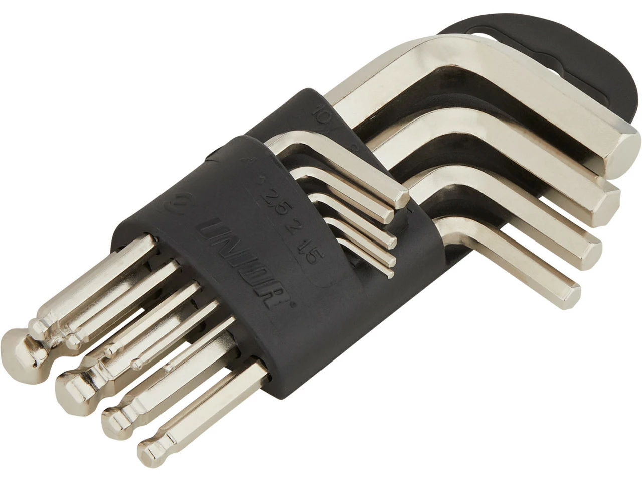 Lieferumfang:1 x Innensechskant-Schlüsselset Unior Bike Tools 220/3SPH Kugelkopf, 9-teilig