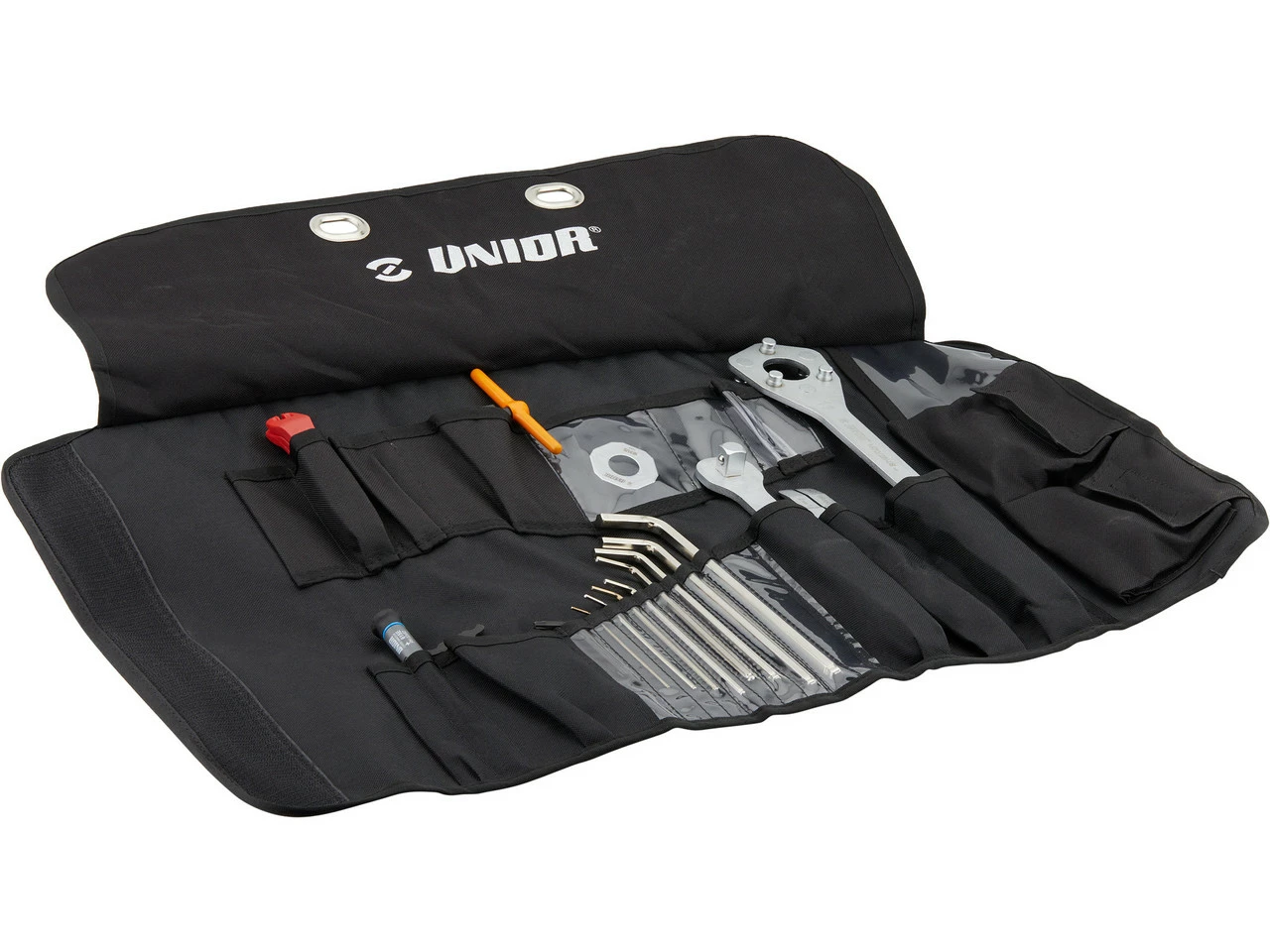 Lieferumfang:1 x Werkzeug-Rolltasche Unior Bike Tools Pro Tool Roll 1600ROLL-P mit Inhalt