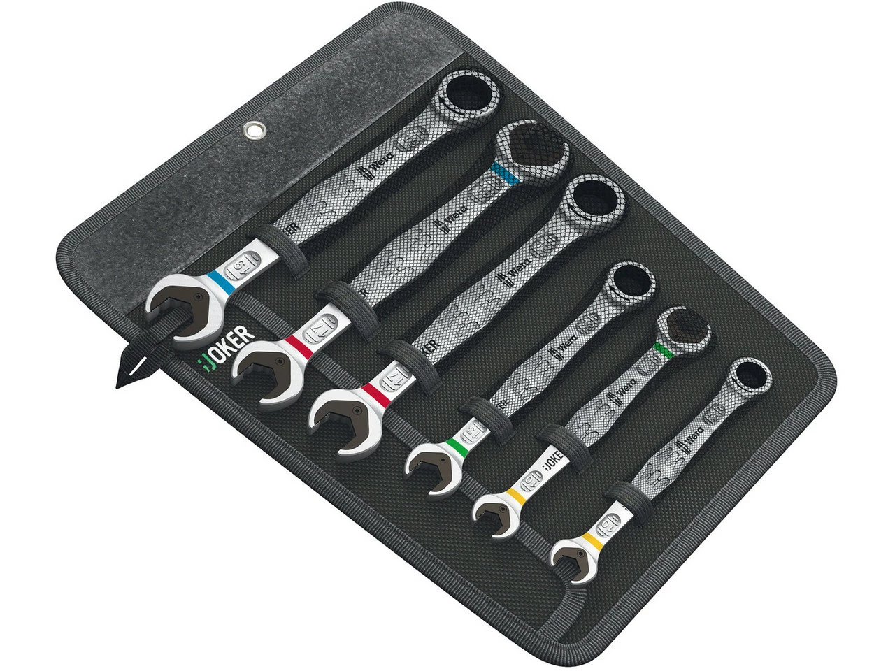 Lieferumfang:4 x Maul-Ringratschenschlüssel Wera Joker (10 / 13 / 17 / 19)2 x Doppelmaulschlüssel Wera Joker Double (10 / 17)1 x Aufbewahrungstasche