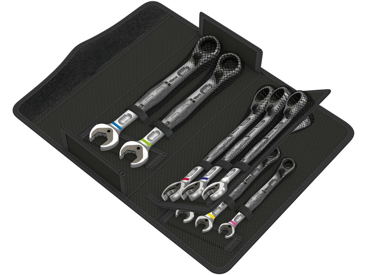 Lieferumfang:11 x Maul-Ringratschenschlüssel Wera Joker Switch (8×144 mm, 10×159 mm, 11×165 mm, 12×171 mm, 13×179 mm, 14×187 mm, 15×199 mm, 16×213 mm, 17×225 mm, 18×234 mm, 19×246 mm)1 x Aufbewahrungstasche Wera