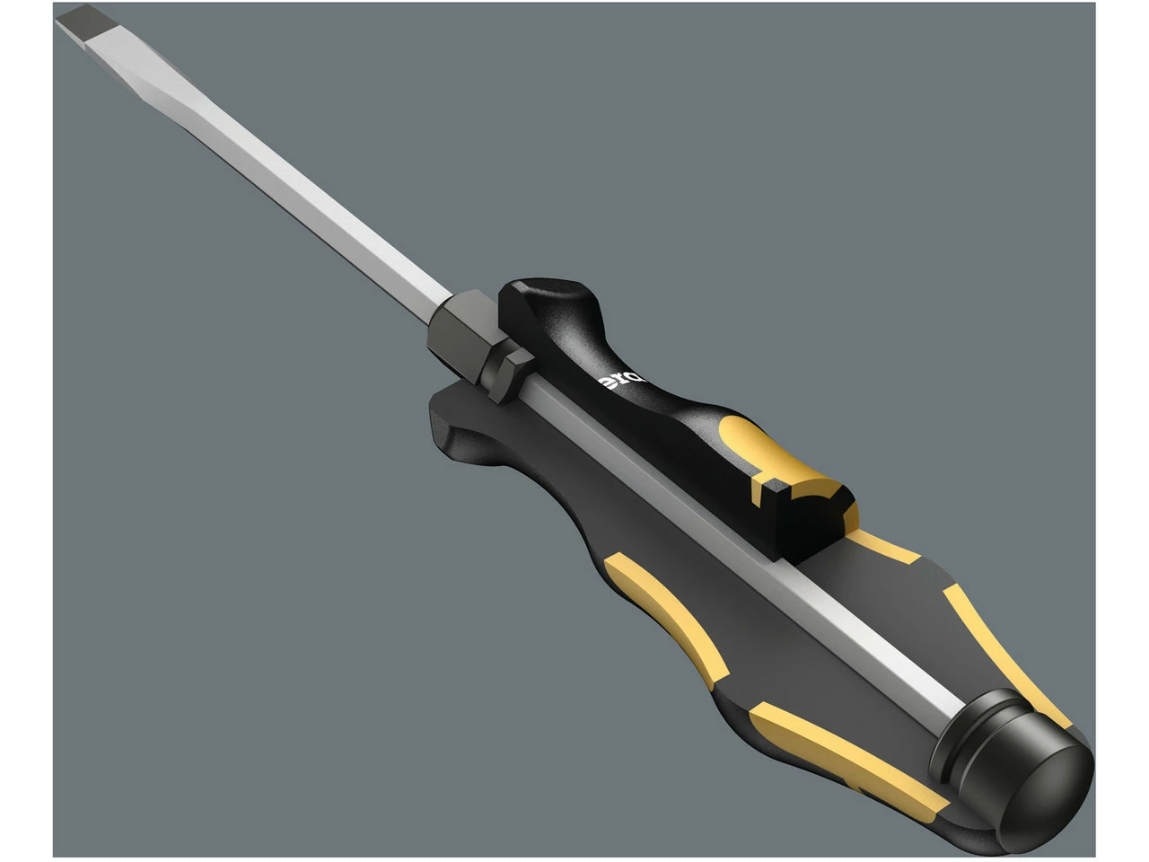 Spezifikationen:Funktion:Schraubwerkzeug, MeißelwerkzeugGröße:Kreuzschlitz (Phillips): PH 1×80 mm, PH 2×100 mm / Schlitz: 0,6×3,5×80 mm, 0,8×4,5×90 mm, 1,0×5,5×100 mm, 1,2×7,0x125 mmAusführung:Schlitzschraubendreher, KreuzschlitzschraubendreherFeatures:Schraubmeißel zum Schrauben, Meißeln und Stemmenmit Schlagkappe und Schlüsselhilfe zur Übertragung höherer Drehmomente (nicht bei Schlitzschraubendreher 0,6×3,5×80 mm)durchgehende Sechskantklinge (nicht bei Schlitzschraubendreher 0,6×3,5×80 mm)Wera Black-Point-Spitze bietet Passgenauigkeit und optimierten Korrosionsschutzmit Griffkennzeichnung zum leichteren Finden und Sortieren des WerkzeugsTechnologie:Kraftform – Die Form, die die Hand gemacht hat