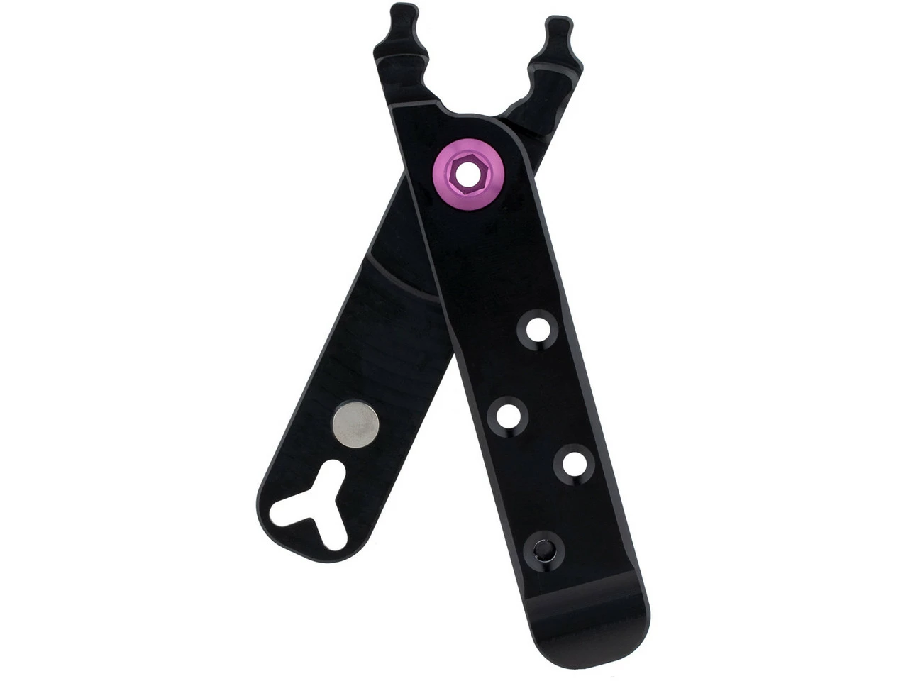 Spezifikationen:Funktion:Öffnen und Schließen von Ketten, Montage und Demontage von ReifenWerkzeugtyp:ZangeAusführung:KombizangeGröße:116 mm x 20 mm x 9 mmTechnische Daten:Material:Aluminium (7075-T6)Kompatibilität:9-, 10-, 11- und 12-fach Ketten mit Kettenschloss (SRAM PowerLock, Shimano Quick-Link, KMC Missing Link u. a.)nicht kompatibel mit Connex Links von WippermannReifenheber für Carbonfelgen nicht empfohlenFeatures:Made in the USAFarbindex:Der erste Bestandteil der Farbbezeichnung gibt die Grundfarbe der Zange an (schwarz oder rot), der zweite Bestandteil die Farbe der zentralen Schraube (schwarz, silbern, rot, blau, grau, grün, gold, orange oder violett).